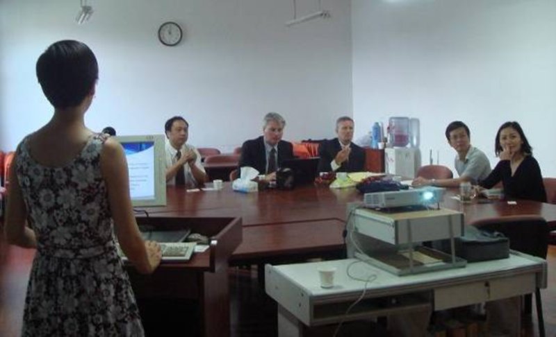 在邹晓东教授简单的开场白之后,中心朱凌博士后向尼尔森副校长一行介绍了科教中心的基本概况,以及中心近三年来所承担的国际会议情况,并展示了浙江大学及人间天堂-杭州的风采。我中心在工程教育及创新研究领域一直有着突出地位,中心所举办的科技教育发展论坛以及ISMOT系列会议在业内也久负盛名。