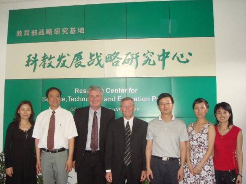 2008年7月8日上午,美国肯恩大学道格·尼尔森(DOUG NELSON)副校长,携校长特别助理麦可·希尔森博士(DR MICHAEL SEARSON,希尔森博士同时也是国际技术信息与教师教育协会副主席及美国苹果公司著名教育家顾问委员会委员)以及校长特别助理徐艇(ALAN XU)先生一起访问浙江大学科教发展战略中心。中心副主任邹晓东教授、孔寒冰副教授、朱凌博士后以及中心秘书余芳珍、李文接待了来访的三位嘉宾。