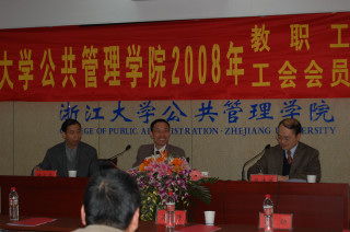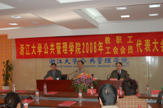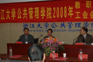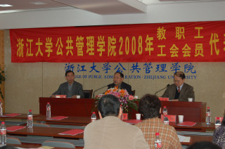 大会由公共管理学院党委书记包迪鸿主持,大会在庄严的国歌声中正式开幕。在会上首先由姚先国院长做题为“践行科学发展观,创建一流公管”的学院工作报告。姚院长从学科建设、人才培养、人事改革、科研管理、地方合作和党的建设等六方面全面回顾了2008年学院所取得的工作成绩,客观分析了当前工作中所存在的问题和困难,并明确了学院今后的工作思路和奋斗目标。