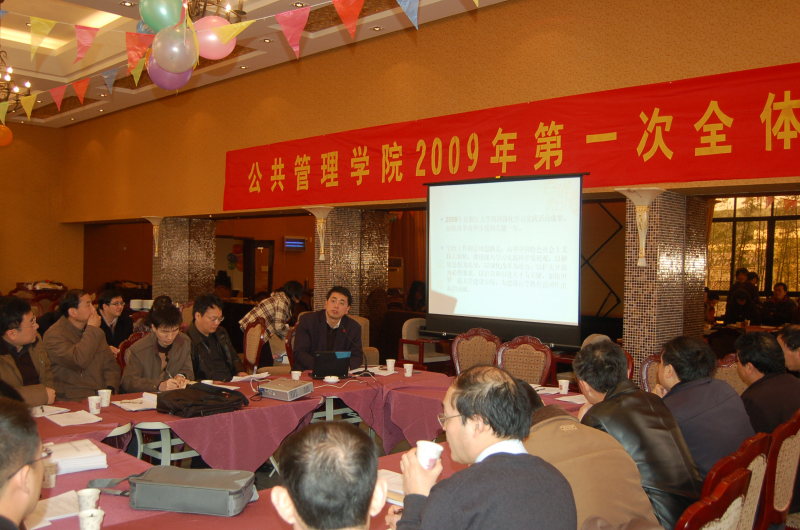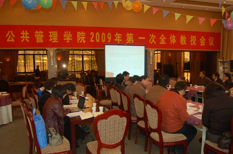 1月17日,公共管理学院召开了2009年第一次全体教授会议。学院党政领导班子成员、学院教授和兼职教授和行政各科室负责人39人参加了本次会议,申请2009年学院“青年教师卓越计划”的教师6人列席了本次会议。