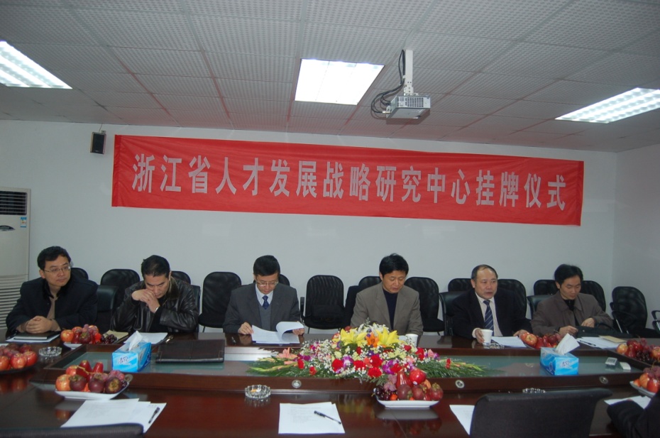 2009年1月22日,浙江省人才发展战略研究中心在浙江大学公共管理学院正式成立。研究中心依托于浙江大学公共管理学院,旨在进一步加强浙江省人才工作基础理论研究和实证调查,提高人才工作水,服务于浙江省经济和社会发展的需要。浙江省委组织部副部长姚志文,浙江大学党委副书记邹晓东出席成立仪式并为研究中心揭牌。出席成立仪式的还有浙江省人才工作办公室副主任徐晓光、江美塘、徐旻,以及浙江大学公共管理学院陈丽君、徐伟红、郭继强、郭夏娟、苗青等多位人才研究领域的专家学者。