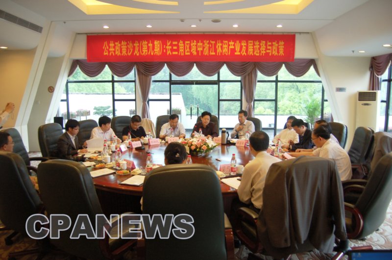 2010年5月18日上午,由浙江省公共政策研究院与浙江大学亚太休闲教育研究中心共同主办的第九期公共政策沙龙——“长三角区域中浙江休闲产业发展选择与政策”在杭州金溪山庄隆重举行。