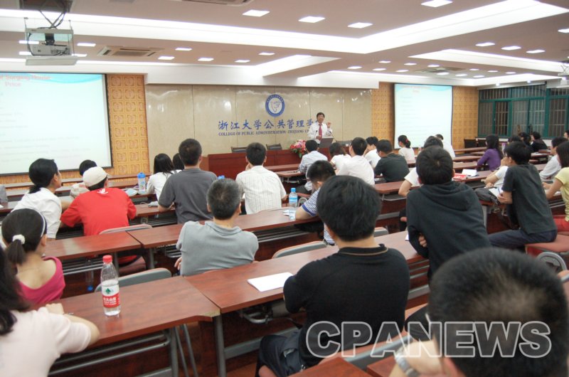 6月1日晚,英国诺丁汉大学当代中国学学院院长姚树洁教授在玉泉校区外经贸楼105报告厅为浙大师生带来了“Housing Market Development in China”的专题讲座,讲座由公管学院院长姚先国教授主持。