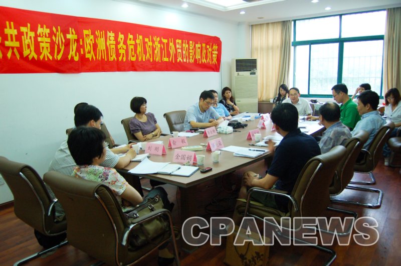本期公共政策沙龙以欧洲债务危机对浙江外贸的影响及对策为主题,对欧洲债务危机起因和发展、世界经济是否会二次探底、欧洲债务危机对浙江外贸影响及对策等议题展开讨论。浙江大学经济学院副院长顾国达教授,浙江省商务厅综合处陈志成处长,浙江省国际贸易研究中心张汉东主任,浙江省工业经济研究所兰建平所长,浙江理工大学经管学院邬关荣教授,浙江工商大学经济学院副院长俞毅教授,浙江省公共政策研究院院长姚先国教授以及浙江省公共政策研究院副院长李金珊教授等领导、专家应邀出席并发表重要观点。浙江省公共政策研究院执行院长金雪军教授主持了沙龙。