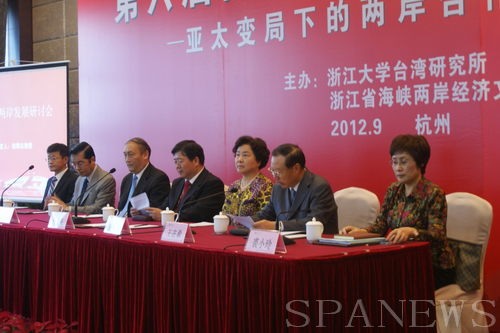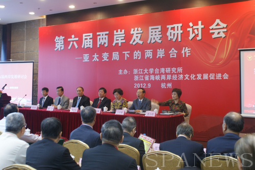 9月30日,“第六届两岸发展研讨会”在浙江大学紫金港校区顺利召开。来自海峡两岸的百余位知名专家学者与会,围绕“亚太变局下的两岸合作”的主题进行了学术探讨与交流。此次研讨会由浙江大学台湾研究所和浙江省海峡两岸经济文化交流发展促进会共同举办。两岸发展研讨会每年一届,每次都结合当时的形势,确定一个主题。今年是第六届,两岸专家学者将重点研讨在当前亚太局势下,两岸在包括东海和南海领土主权争议等方面如何开展合作的问题,并对两岸合作的领域、机制和内容提出建议。