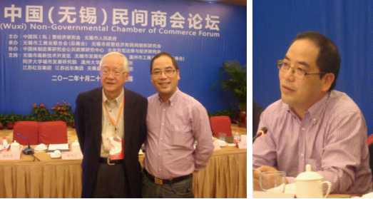 10月20-21日,郁建兴教授出席了2012年中国民间商会论坛并发表主题演讲。本届论坛由中国民(私)营经济研究会和无锡市人民政府联合主办,在江苏省无锡市举行,主题为“商会协会建设和民营经济发展”。国务院发展研究中心研究员吴敬琏,北京大学政府管理学院教授顾昕,中国社会科学院工业经济研究所研究员余晖,中国社会科学院农村发展研究所研究员冯兴元,全国工商联副主席、中国民(私)营经济研究会会长庄聪生,民政部民间组织管理局副局长李勇,国家发改委经济体制综合改革司副司长宋葛龙,全国工商联会员部副部长李树林等专家学者出席了论坛。