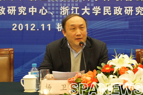 由浙江大学民政研究中心和浙江省民政厅民政研究中心联合举办的2012年度“浙江社会管理创新暨浙江民政论坛”于11月21日—22日在杭州之江饭店隆重举行。杨卫校长出席开幕式,代表论坛主办方向大会致辞;罗卫东副校长主持论坛主题演讲;浙江大学民政研究中心执行主任毛丹教授、副主任冯钢教授、赖金良教授、郎友兴教授,以及民政研究中心兼职研究员张国清教授、阮云星教授等出席了论坛,并主持了分论坛。本次论坛得到了国家民政部和省政府领导的高度重视。浙江省副省长陈加元、省社科联党组书记陈荣出席了开幕式并作了讲话。民政部李立国部长特派民政部政策研究中心主任王爱平全程参加论坛讨论。省民政厅厅长尚清主持开幕式,省民政厅领导李立定、万亚伟、俞志壮、梁星心、廖卷清、李刚等出席或主持论坛活动。