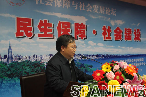 12月12日,以浙江大学公共管理学院和浙江大学劳动保障与社会政策研究中心教师为学术骨干所组织的“2012年社会保障与社会发展论坛”在浙江大学玉泉校区邵科馆举行。出席本次论坛的主要领导有浙江省人民政府副省长陈加元,浙江省人大常委会副主任、浙江大学党委书记金德水,国家人力资源和社会保障部规划财务司副司长明瑞锋,浙江大学党委副书记周谷平,浙江大学发展委员会副主席、浙江省社会保障发展研究中心主任郑造桓等人。周谷平主持了会议,金德水致欢迎词,郑造桓最后对本次论坛作了总结。浙江省委、省政府有关部门的领导和中国社会科学院、浙江大学等高等院校、研究机构的专家学者共计100余人参加了会议。