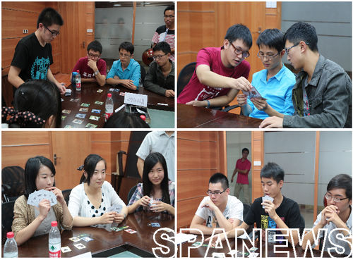 同时,3V3三国杀比赛也在国际会议中心357室和361室激烈开赛。3V3三国杀比赛是始业教育系列活动趣味运动会中最富有趣味的一项比赛,共有来自六个系的18名同学参加。比赛第一轮由6支队伍抽签分别进行3组对抗,第二轮中,第一轮胜利的队伍进行角逐一、二、三名,其他三支队伍角逐四、五、六名。比赛开始前,选手已经相继到场,或熟悉规则,或商量策略。经过对抗,土地管理系代表队、政府管理系和城市发展管理系联合代表队、社会学系和科教中心联合代表队胜出进入第二轮。第二轮的比赛更加激烈,双方主帅和将领都谨慎出牌,通力合作。最后,社会学系和科教中心联合代表队的三名同学一举夺得本次3V3三国杀比赛的第一名,成为了最后的胜者。土地管理系代表队、政府管理系和城市发展管理系联合代表队分获二、三名。