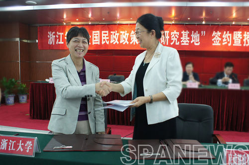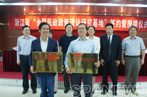 9月25日,浙江省“全国民政政策理论研究基地”签约暨授牌仪式在杭州隆重举行。经国家民政部批准,国家民政部政策研究中心主任王爱平与中共浙江大学党委副书记周谷平、省民政厅厅长尚清分别签署了《关于共同开展民政政策理论研究合作框架的协议》,并分别向浙江大学、省民政厅授予“全国民政政策理论研究基地”牌匾。