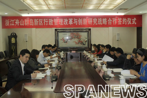 11月5日,浙江大学与舟山群岛新区管委会在舟山市签订了关于行政管理改革与创新研究战略合作框架协议。根据协议,双方将联合舟山群岛新区发展研究院成立“行政管理创新研究中心”,通过校、地合作,系统研究舟山群岛新区(舟山市)在政府职能转变、体制和管理创新等方面的实践举措,促进舟山群岛新区(舟山市)完善行政管理体制、提升地方治理水平,推进浙江大学公共管理学科的快速发展,并为浙江省乃至全国行政管理体制变革提供实践经验和智力支持。该合作计划的浙江大学方执行单位为公共管理学院。