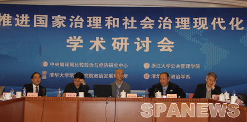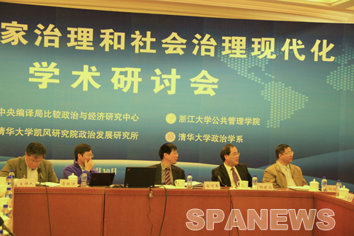 11月30日,由中共中央编译局、浙江大学公共管理学院、清华大学政治学系联合主办的“推进国家治理和社会治理现代化学术研讨会”在北京会议中心举行。中央编译局副局长俞可平、中央党校王长江、清华大学景跃进、北京大学徐湘林、国务院发展研究中心赵树凯等16位知名教授发表演讲。公共管理学院作为主办方之一,常务副院长郁建兴教授发表了演讲并主持了第二场讨论会,余逊达教授出席了会议并发表了演讲。