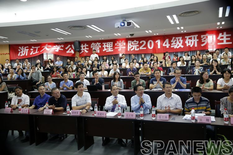 9月21日下午,浙江大学公共管理学院2014级研究生新生开学典礼在紫金港校区蒙民伟楼举行。拥有近300个座位的140会议室济济一堂,来自海内外研究生新生们踌躇满志、兴致勃勃地参加了这一简朴而又庄重的典礼。