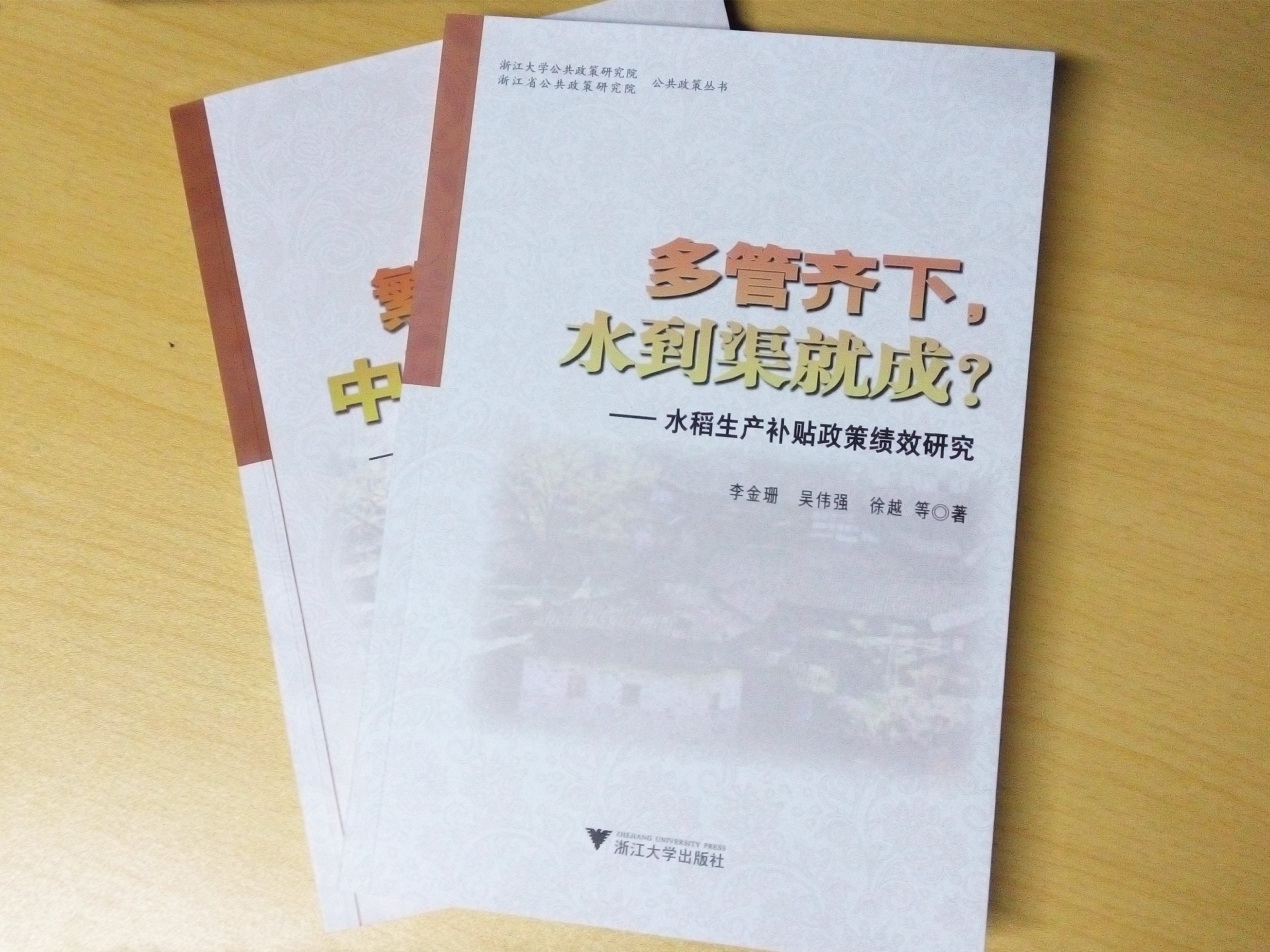 浙江大学公共管理学院院城市发展管理系李金珊教授及其调研团队最新调研成果《多管齐下,水到渠就成?——水稻生产补贴政策绩效研究》于2014年10月正式出版。该著作为浙江大学/浙江省公共政策研究院公共政策丛书的第二本专著,是以浙江省水稻生产过程中的专项资金政策为研究对象,历时5个月的调研走访,对17项专项政策资金的政策绩效进行客观评价后形成的系统性调研成果。