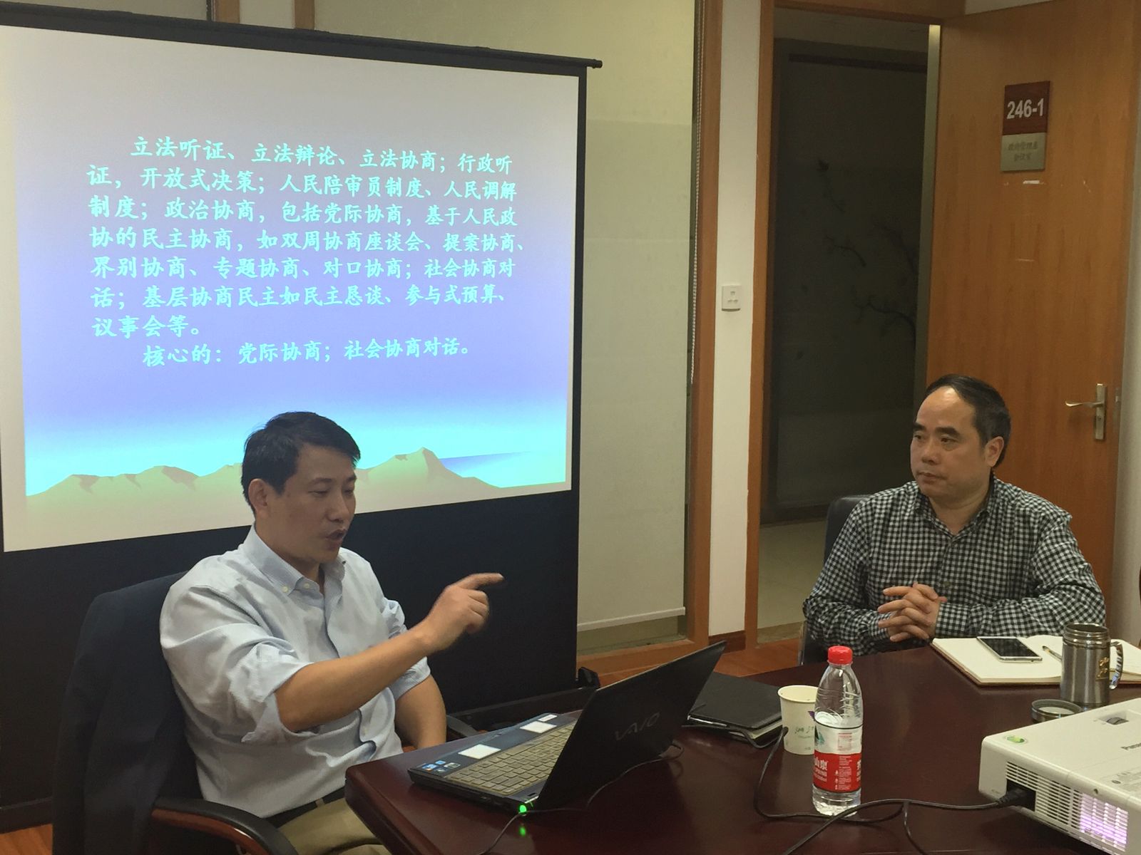 陈家刚研究员进一步探讨了协商民主的当代价值。首先,协商民主能够促进合法决策。政策只有得到政策对象的认同,才能够具备合法性和被有效地实施。目前政府的普遍现状就是“密室”决策和“拍脑袋”决策,决策依然是少部分人的事,政策缺乏合法性,因而也不可能被有效地实行。当务之急是让利益的相关方都尽可能参与进决策过程,才能赋予政策以合法性。在这里,陈家刚研究员还特别强调了利益攸关方和利益相关方之间的区别。两者在相关程度不同,他主张在话语中使用“利益相关方”一词。第二,培养公民精神。当别人在表达自己的观点时,要倾听和思考别人的意见,藉此逐步养成公民精神。第三,控制行政权力膨胀。美国人对权力有着天生的警惕意识,但在中国,行政和司法的自由裁量权依然过大,官僚自由裁量权的关键是行政机构获得了制定规则以确定公共政策的内容而无须承担同等民主责任。第四,协商民主能够充分发挥理性的作用。协商民主强调理性,情绪化诉求不利于民主的有序开展。在这里,陈家刚研究员也指出,在民主过程中一些技术性的设置很必要。第五,陈家刚研究员以澳大利亚的土著文化与白人文化之间的冲突为例,说明了协商民主可以有效回应文化间对话和多元文化社会认知的某些核心问题。第六,以美国频发的枪击案和枪支管理为例,协商过程是对当代自由民主中流行的个人主义和自利道德的矫正。第七,协商民主是应对全球性冲突的重要选择。在全球治理问题上,国家不是主要的单一的行为主体,离开了多元的行为主体,就不是全球治理。恐怖主义、能源、生态环境等等当代问题都需要全球治理。近期,习近平总书记关于全球治理议题也作出了重要谈话,尽管协商民主在目前还是多运用于国内政治,但是协商民主也可以上升到全球治理层面。
