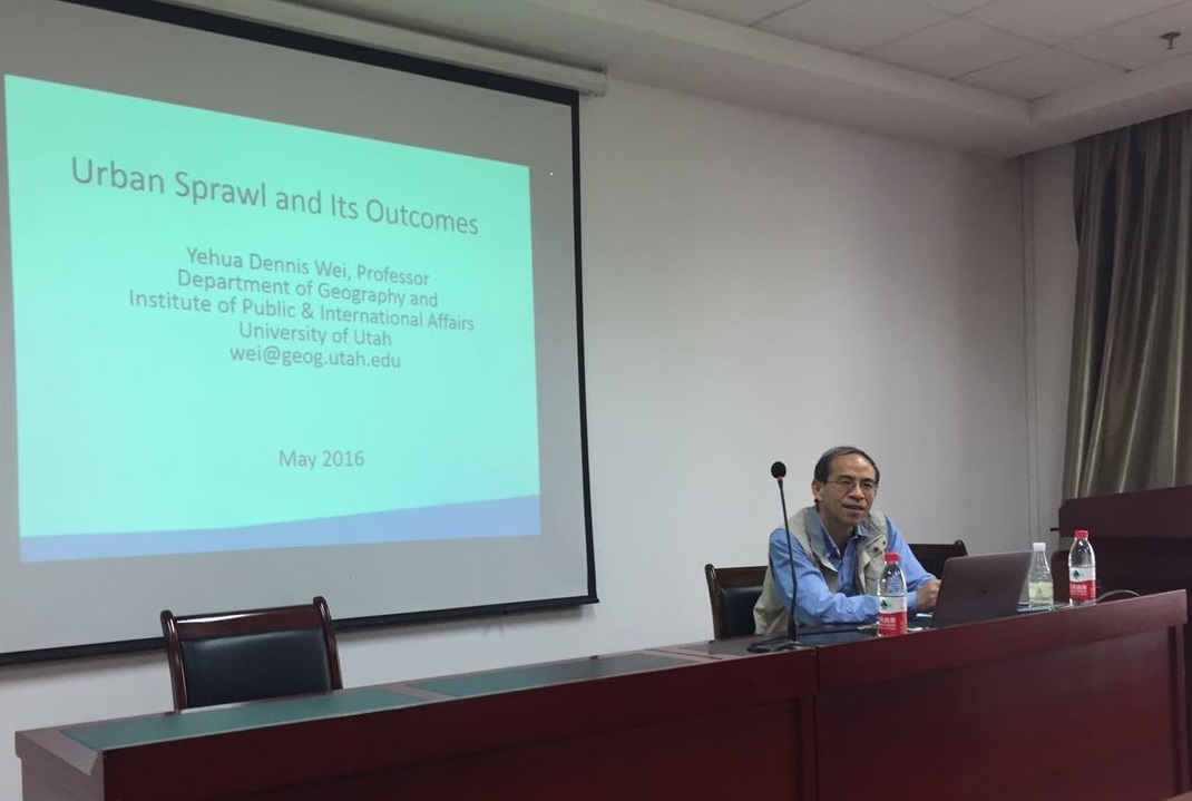 5月17日下午13:15,由浙江大学公共管理学院GREEN IT工作坊和浙江大学土地科学与不动产研究所共同主办的魏也华博士的学术报告在国会250如期举行。魏也华博士是美国犹他大学公共国际事务研究院与地理系的终身教授,中国国家杰出青年基金(海外)获得者,世界银行顾问,美国国家科学基金(NSF)终审组成员,更是人文地理领域唯一一个入选“中国科学院海外评审专家”的学者,发表SSCI论文90多篇,Google Scholar引用4000多次。在土地科学与不动产研究所所长岳文泽教授的一番介绍后,魏教授围绕“Urban Sprawl and its Outcomes”这一主题开始了此次讲座。