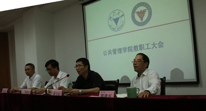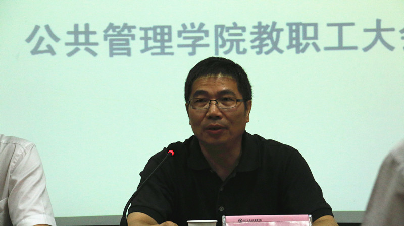 严建华回顾了公共管理学科和农业经济与管理学科之间的渊源,重点介绍了本次学科评估中两个学科全体老师的辛勤工作和团结协作,指出农业经济与管理学科整建制转入公共管理学院是学校领导及两个学科的全体老师经过反复研讨、认真分析利弊之后做出的有利于学科共同发展的重大决策,并对今后的工作提出了三点希望:第一,学校领导及人事处、科研院、研究生院等相关部处全力支持农业经济与管理学科整体转入公管学院,希望农业经济与管理学科能平稳度过过渡期,有问题及其反馈,及时沟通;第二,希望农业经济与管理学科在过渡期内仍然能保持高位运行,为学校争取更多新的荣誉;第三,希望加入了农业经济与管理学科后的新公共管理学院在教育、科研、学科发展、队伍建设、人才培养等各方面取得更多新的更好的成绩。