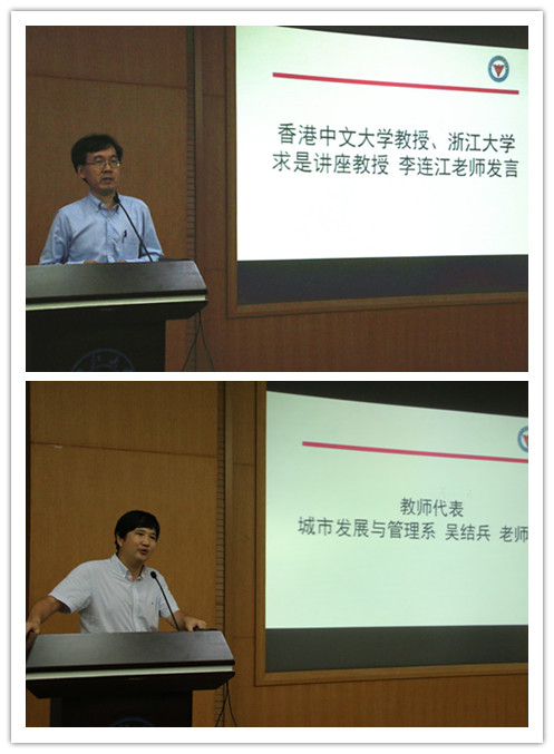 教师代表李连江教授在致辞中引用自己恩师的话表达了对2016级研究生的美好期冀—— “走一条路,做一件事,做到极致”。他告诫同学们珍惜、丰富、努力记住人生的每一天,“当时只道是寻常,过后思量倍有情。”导师代表吴结兵教授在发言中与研究生新生们分享了自己读研时的经历与感悟,强调了学术传承的重要性,建议同学们早日确立目标,希望大家都能成为振兴师门的“张无忌”。