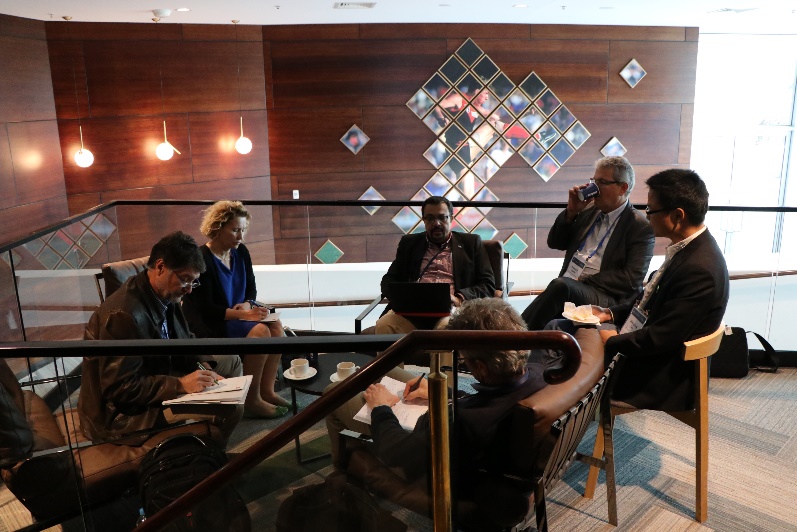 图为谷保静研究员和Hans一起与联合国环境署官员及IFA主管商讨巴西的案例设计