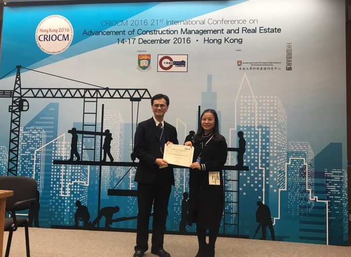 2016年12月16日,由中华建设管理研究会与香港大学共同主办的第二十一届建设管理与房地产发展国际学术研讨会(CRIOCM2016)在香港大学顺利闭幕。本次研讨会围绕建设管理、房地产、土地利用、城市发展等主题,吸引到了来自美国、英国、澳大利亚、香港、中国大陆等近20个国家与地区的专家学者参会。我校土地管理系吴宇哲教授率7位研究生、携8篇文章出席了会议。