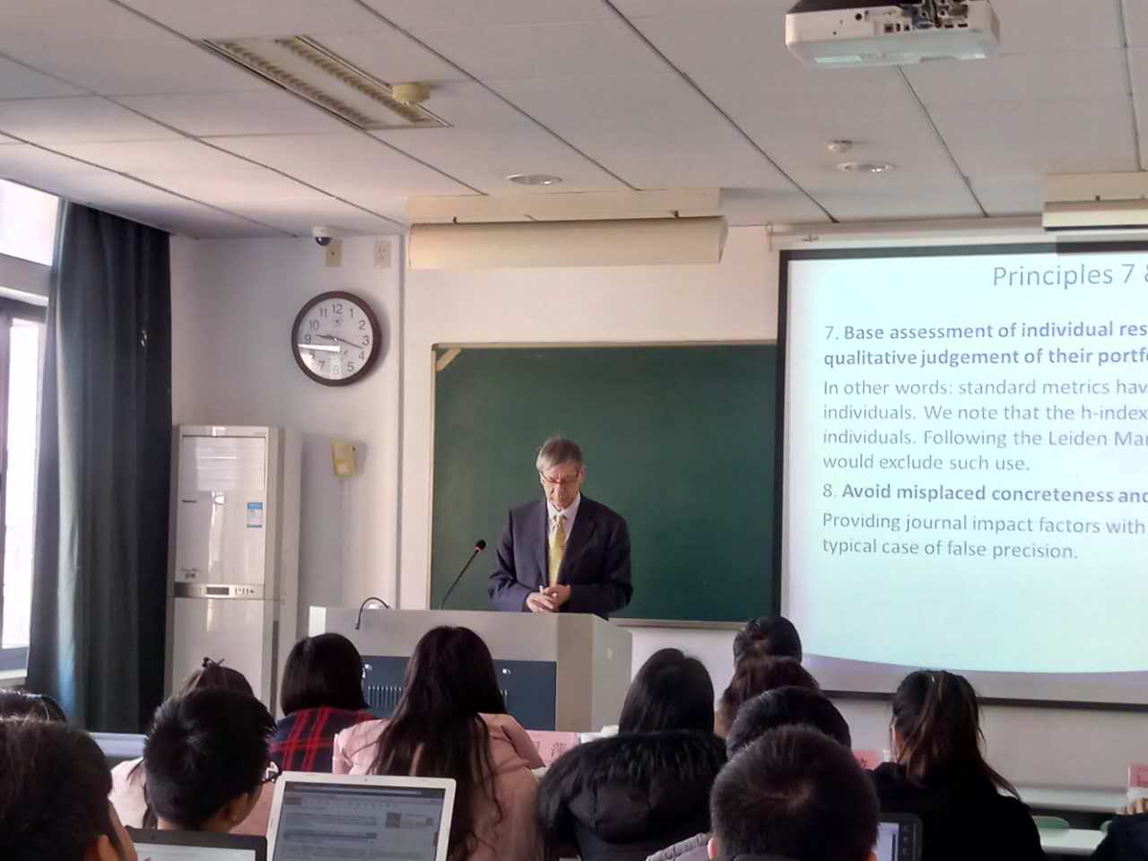 2017年3月14日上午,应我院信息资源管理系李江副教授邀请,国际信息计量学与科学计量学会创始人之一兼前任主席、Price奖获得者Ronald Rousseau教授为公共管理学院师生做了题为“Leiden manifesto and regional bibliographic information systems”的报告。讲座由李江副教授主持,出席本次学术交流的教师包括信息资源管理系主任傅荣校教授,医学院胡小君教授,信息资源管理系付慧真博士及30余位在校生。