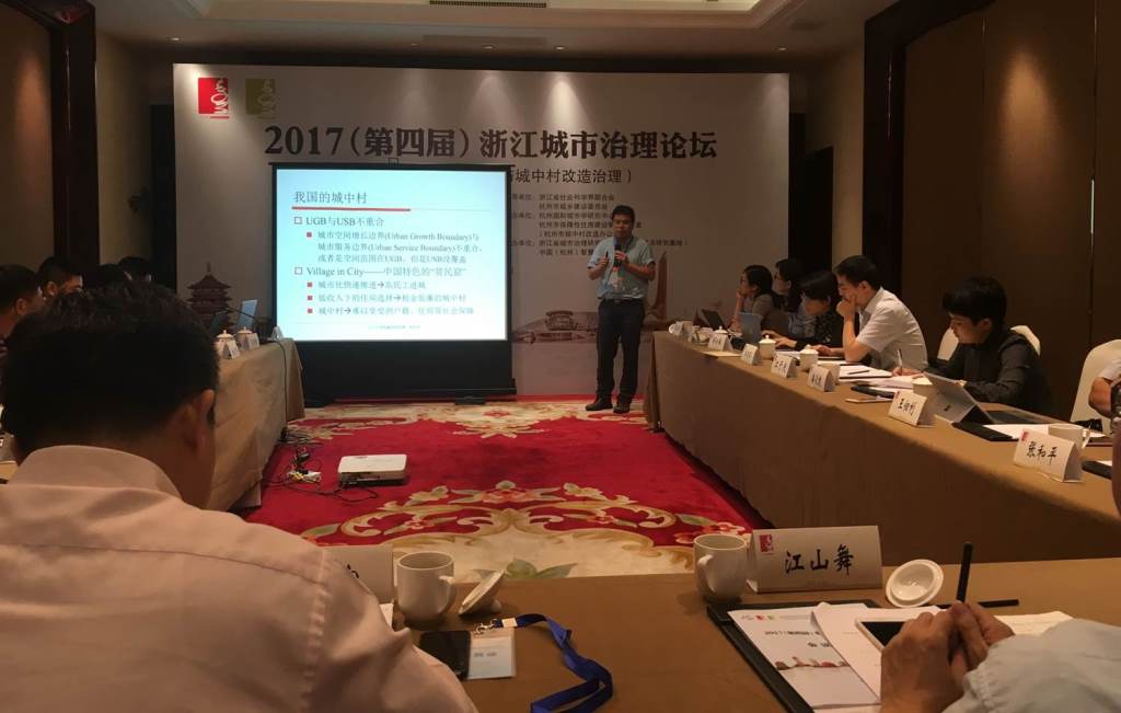 2017年9月23日,应杭州国际城市学研究中心邀请,我院土地管理系系主任吴宇哲教授出席了2017(第四届)浙江城市治理论坛。浙江省哲学社会科学规划办主任俞晓光、杭州市保障性住房建设管理办公室主任褚烨、杭州国际城市学研究中心主任江山舞分别代表会议指导单位、会议举办单位和承担单位领导致辞,来自浙江大学、山东大学、上海财经大学、浙江工业大学、杭州市城市规划设计研究院、杭州市政协办公厅、杭州市数字城管信息处置中心和华东勘测设计研究院等10余家单位的20余位专家出席了论坛,20余位年青学者和研究生与会。论坛由浙江省政府参事、浙江省委党校原副校长、浙江省城市治理研究中心首席专家马力宏教授主持。