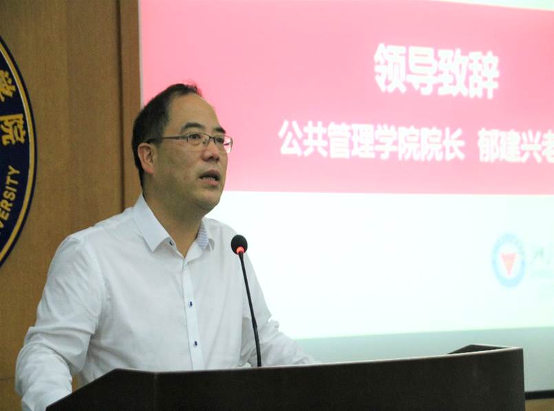 学院院长郁建兴教授发表精彩讲话。他向新加入学院的2016级本科生简单介绍了学院的发展情况,并提出殷切希望和诚挚祝愿。他表示,学院成立于2005年,在成立以来的十二年时间里,全院师生努力奋进,不断创新,在师资、教学、科研、学科建设等方面取得了可喜的成绩:公共管理学科进入全国第一方阵,农林经济管理入选全国“双一流”建设学科名单。这些为学生的学习和成长创造了良好的环境。郁建兴院长希望同学们能够充分利用好学院条件,在努力提高专业素质的同时,更要提高自己的素养,做有教养的现代公民、有理想有担当的人。