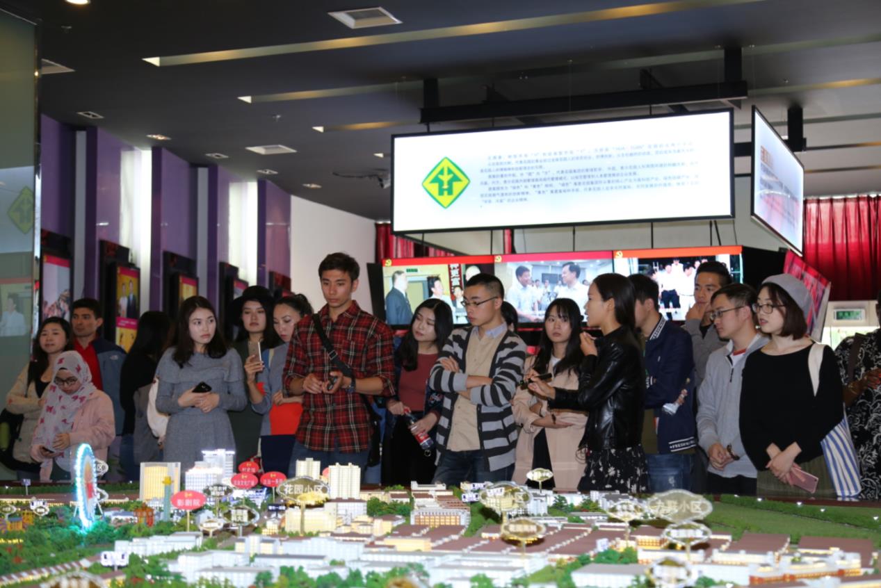 抵达花园村后,师生一行首先参观了花园村的村史馆。在花园村导游的讲解下,同学们逐渐了解了花园村的发展过程与历史故事。在村委党书记邵钦祥的领导下,花园村从占地0.9平方公里、农户183户的穷山村庄发展到如今占地12平方公里、总人口逾6.5万人的规模,并且形成集工业、教育、娱乐、养老、科技创新于一体的综合型村庄,这离不开花园村村民“求实、创新、求强、共富”的精神理念。