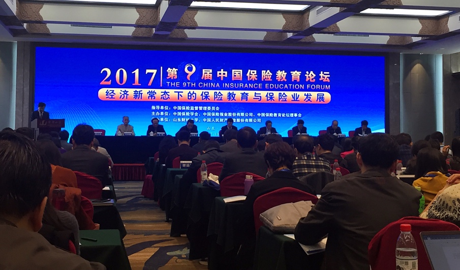2017年10月27-28日,由中国保险学会、中国保险教育理事会、山东财经大学主办的“第九届中国保险教育论坛”在济南召开。中国保监会、中国保险学会领导出席会议并致辞,来自北京大学、清华大学、中国人民大学、浙江大学、南开大学、武汉大学、西南财经大学等高等院校的保险教学科研工作者,以及中国人民保险公司等保险企业、保险中介机构的保险专业人士共300多人参加了会议,我院何文炯、张跃华、施红老师参加会议。