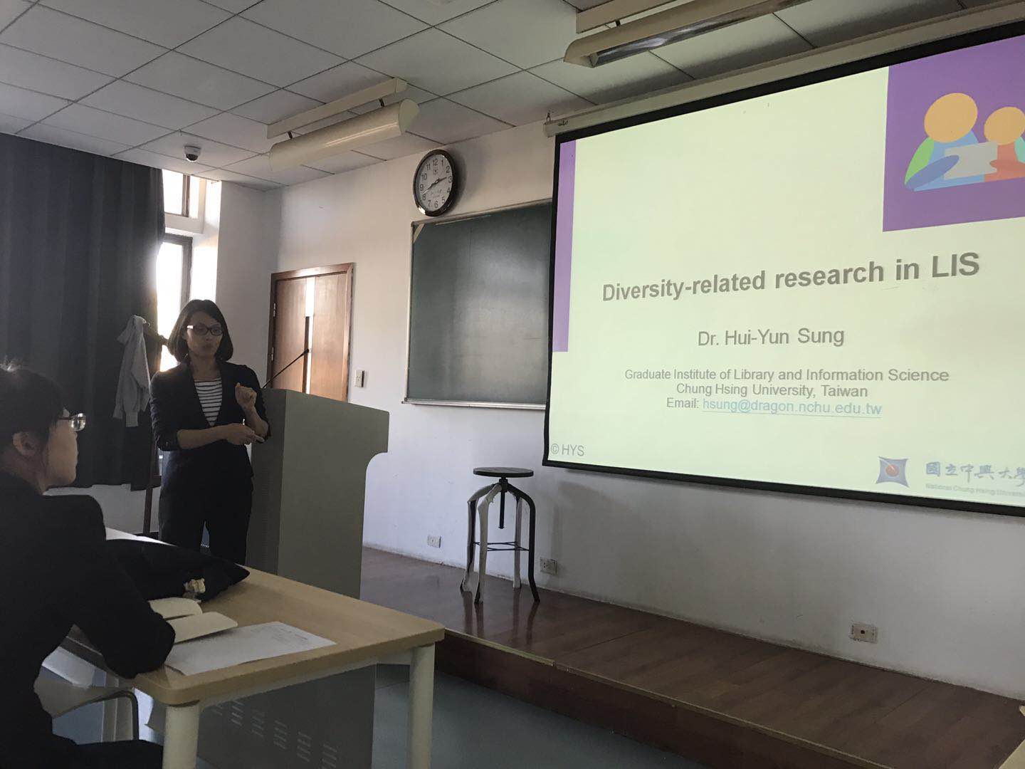 讲座下半场,来自台湾的Hui-Yun Sung博士以“Diversity-related research in LIS”为题作报告。孙博士首先对1995-2014年图书情报科学领域top期刊上有关多元化研究状况进行了文献计量分析,研究发现,关注信息普遍均等获取、多元化服务和社会公正是图书情报领域的传统,近年来该主题依然很活跃。研究焦点主要侧重于年龄、性别和少数族裔人群方面。报告认为图书情报领域应更加关注社区需求和为所有人提供平等服务。随后,孙博士结合自己多年的调查研究,介绍了国外公共图书馆在为弱势群体服务方面如何重视和践行社区参与,以及英国一些成功的实践案例。报告第三部分,孙博士结合自己的行动研究,阐述了公共图书馆如何促进学龄前儿童的早期素养和数字素养,特别是如何参与到父母与学龄前儿童对新技术使用互动上。
