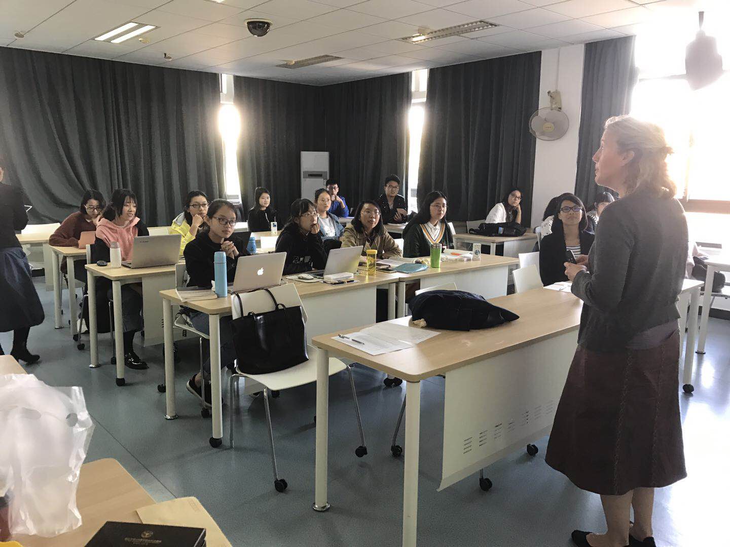 本次讲座活动共有两场主题报告。讲座上半场,Kim M. Thompson博士用通俗幽默的语言向同学们作了题为“Digital inclusion: Women and new information and communication technologies”的报告。