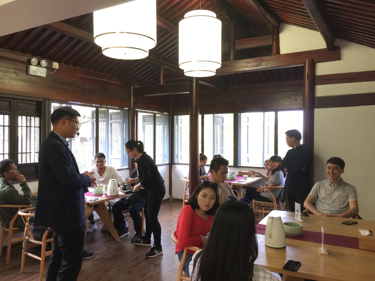 今年的杭城三月末,似乎有股初夏的味道,晚樱、玉兰的芬芳弥漫在鼻尖,好是清爽。在经历了月初的忽雨忽晴,三月末的风轻云淡,真是叫人十分享受。3月30日,晴朗的午后,微风拂袖,浙江大学2017级“亚洲未来领袖”与国际事务与全球治理硕士班二十多位学员在政治学系周云亨老师和国际与港澳台事务办公室张诗蕾老师的带领下,一同出去走走,探寻那隐藏在山水间的中国茶叶博物馆。学员大多来自世界各地,文化上虽有殊异,但都期待着通过这次机会,感受中国茶文化的魅力与底蕴。