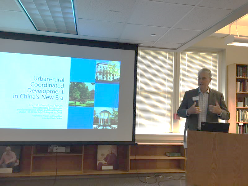 2018年7月23-24日,由美国北卡罗来纳大学中国城市研究中心主办,浙江大学、北京师范大学和上海交通大学联合协办的首届城乡可持续发展与治理国际论坛(The 1st International Forum for Sustainable Development)在北卡罗来纳大学教堂山分校(UNC-Chapel Hill)举行。本次论坛吸引了来自清华大学、浙江大学、上海交通大学、北京师范大学、华中农业大学等十多位国内知名院校的专家和学者赴美交流。论坛围绕“中美小镇比较”这一主题开展专题发言,深入讨论。北卡罗莱纳大学城市与区域规划系系主任Bill Rohe教授出席并致辞,城市与区域规划系终身教授、中国城市研究中心主任宋彦教授主持。