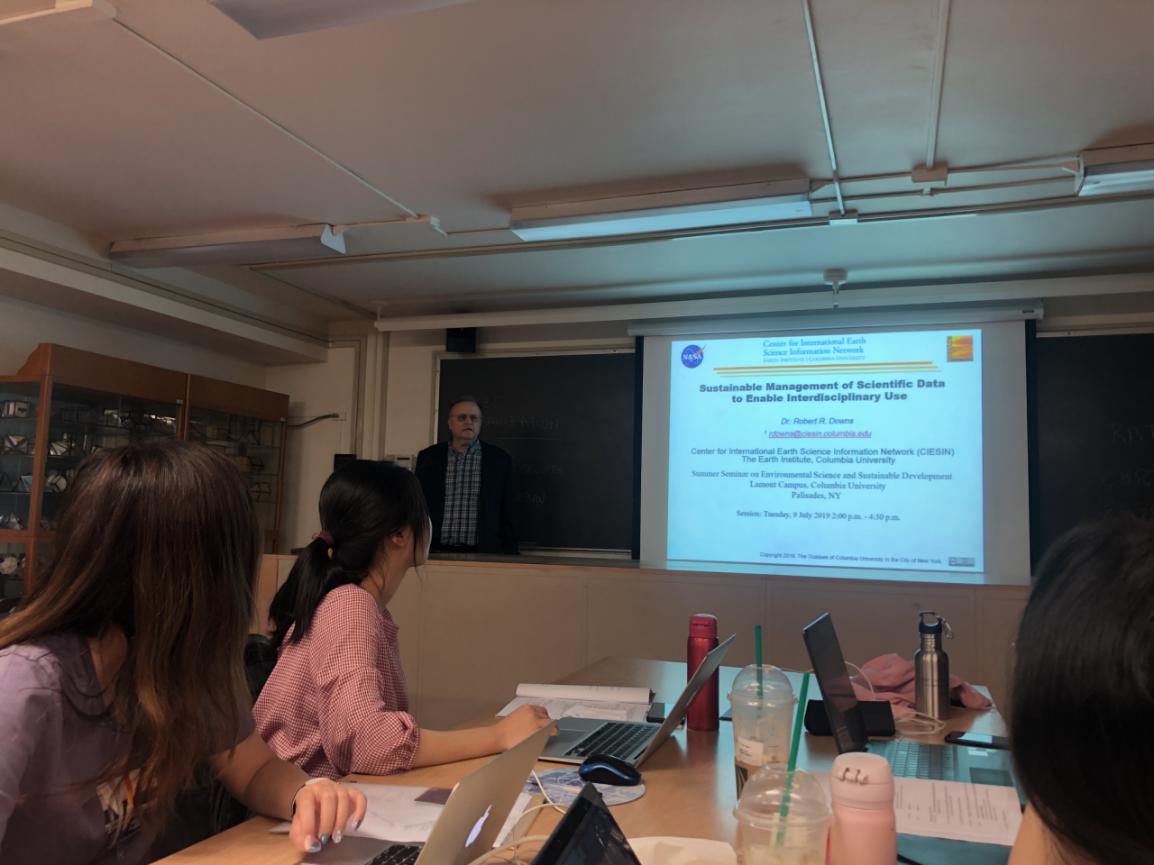 随后,CIESIN中心信息科学家邢小士老师以气候变化与公共政策制定为主题,为同学们作了精彩的分享;中心高级信息专家Robert Downs还就“科学数据的可持续管理,使跨学科的使用成为可能”这一主题与同学们展开讨论,他介绍了跨学科数据使用的价值,包括使跨学科问题的研究成为可能,赢得了不同专业同学们的热烈掌声。