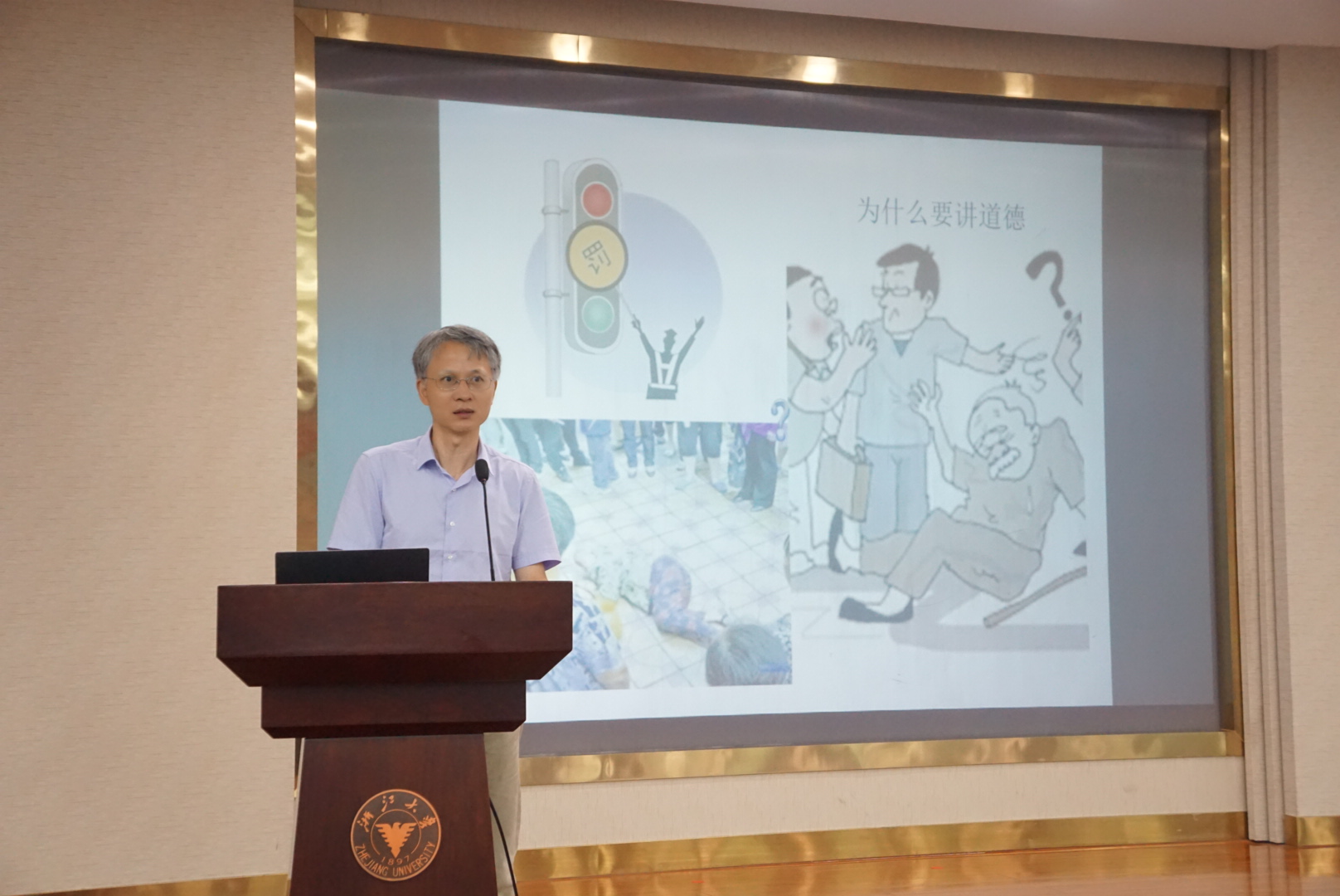 开学典礼第二阶段始业教育,由公共管理学院团委书记程思遥主持。钱文荣教授为全体研究生新生作学术规范教育专题报告,强调了个人道德操守与学术规范的重要性。研究生管理办公室吕婉菀老师、董宁宁老师向2019级研究生新生介绍了教学管理制度及研究生培养环节,团委书记、研究生辅导员程思遥老师向新生们介绍了始业教育日程安排以及防网络诈骗教育等。