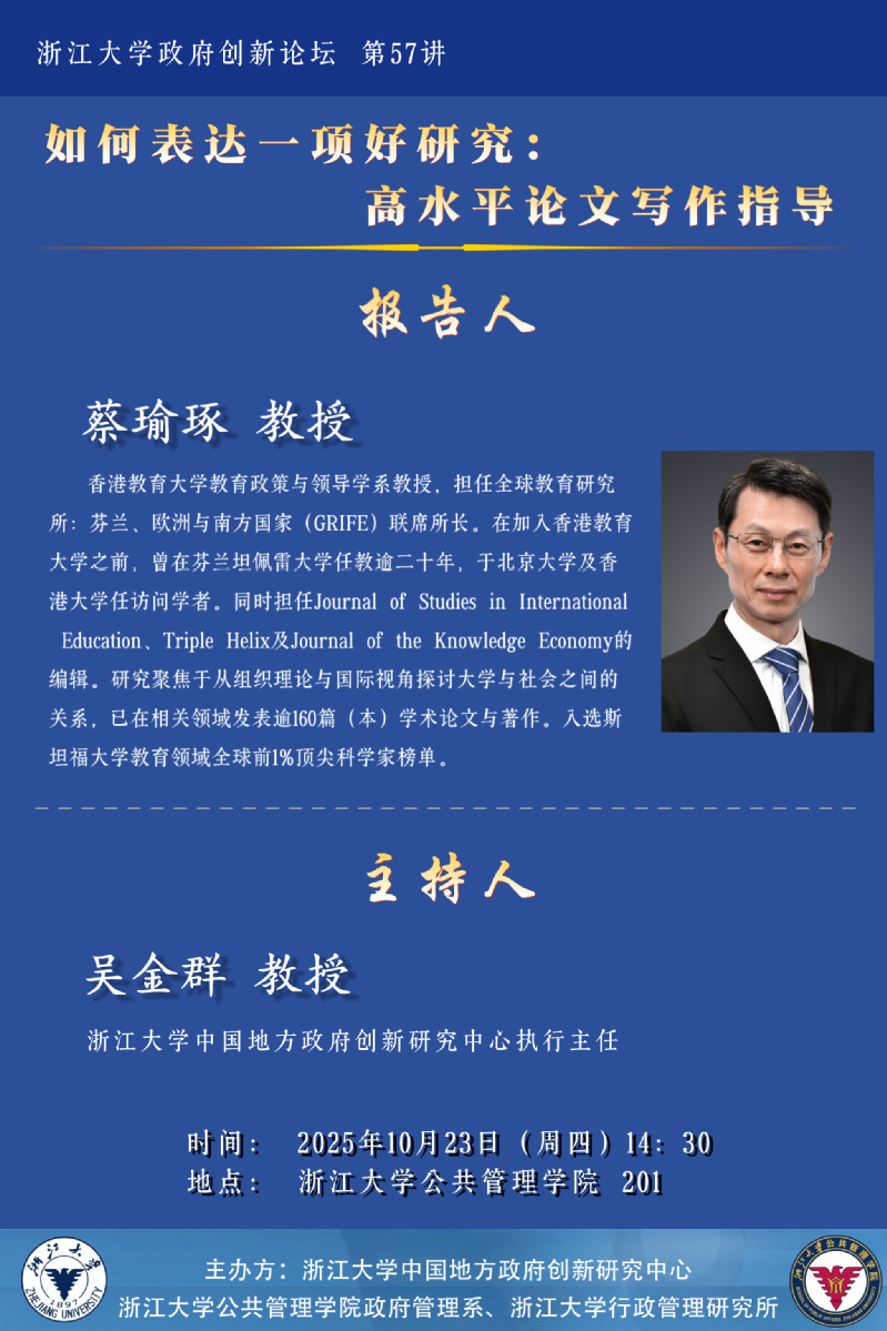 浙江大学政府创新论坛 第57讲 如何表达一项好研究:高水平论文写作指导