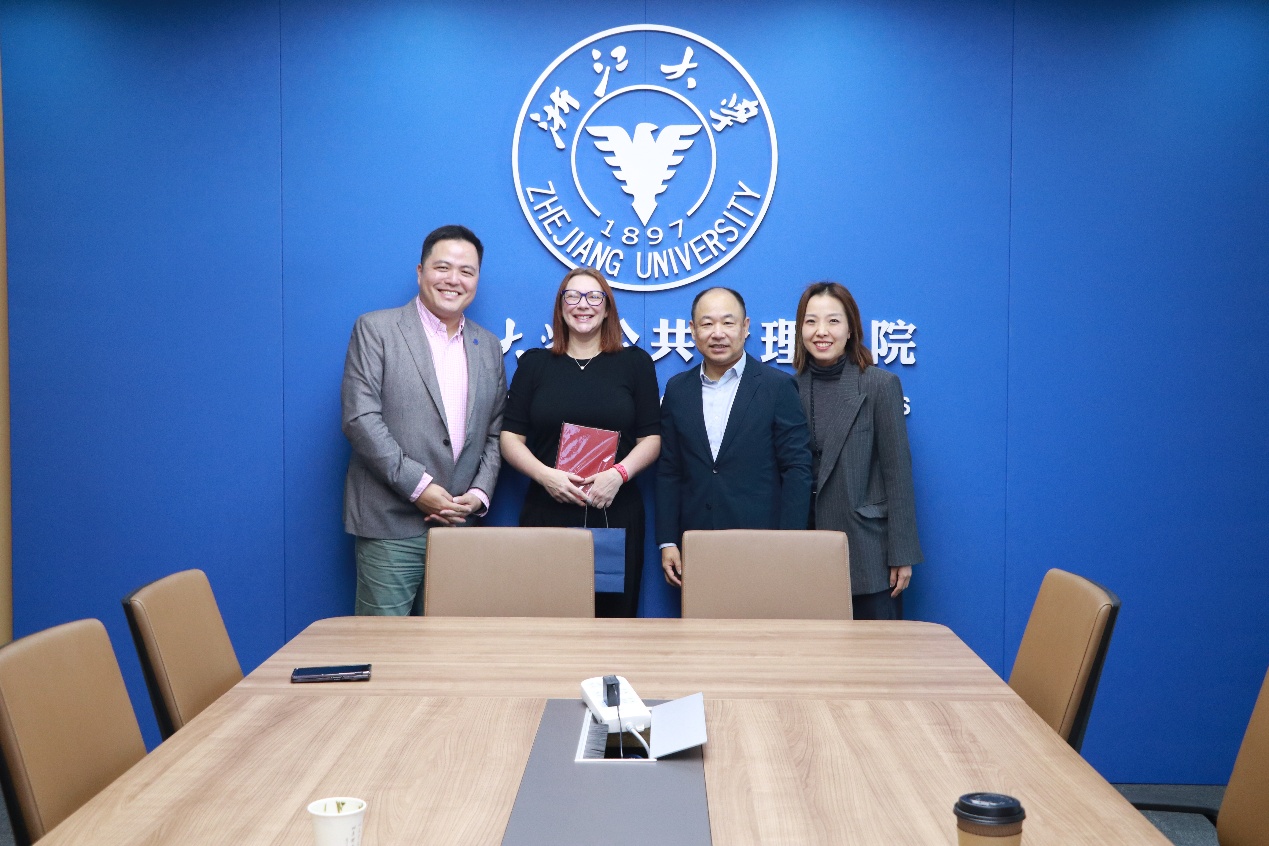 2025年11月18日早上,英国利兹大学社会科学学部学生教育副院长维多利亚・霍尼曼(Victoria Honeyman)教授到访浙江大学公共管理学院,院长赵志荣教授、政治学系沈伟教授、外事秘书林璐女士出席会谈,双方围绕校际合作前景展开深入交流,达成多项共识。