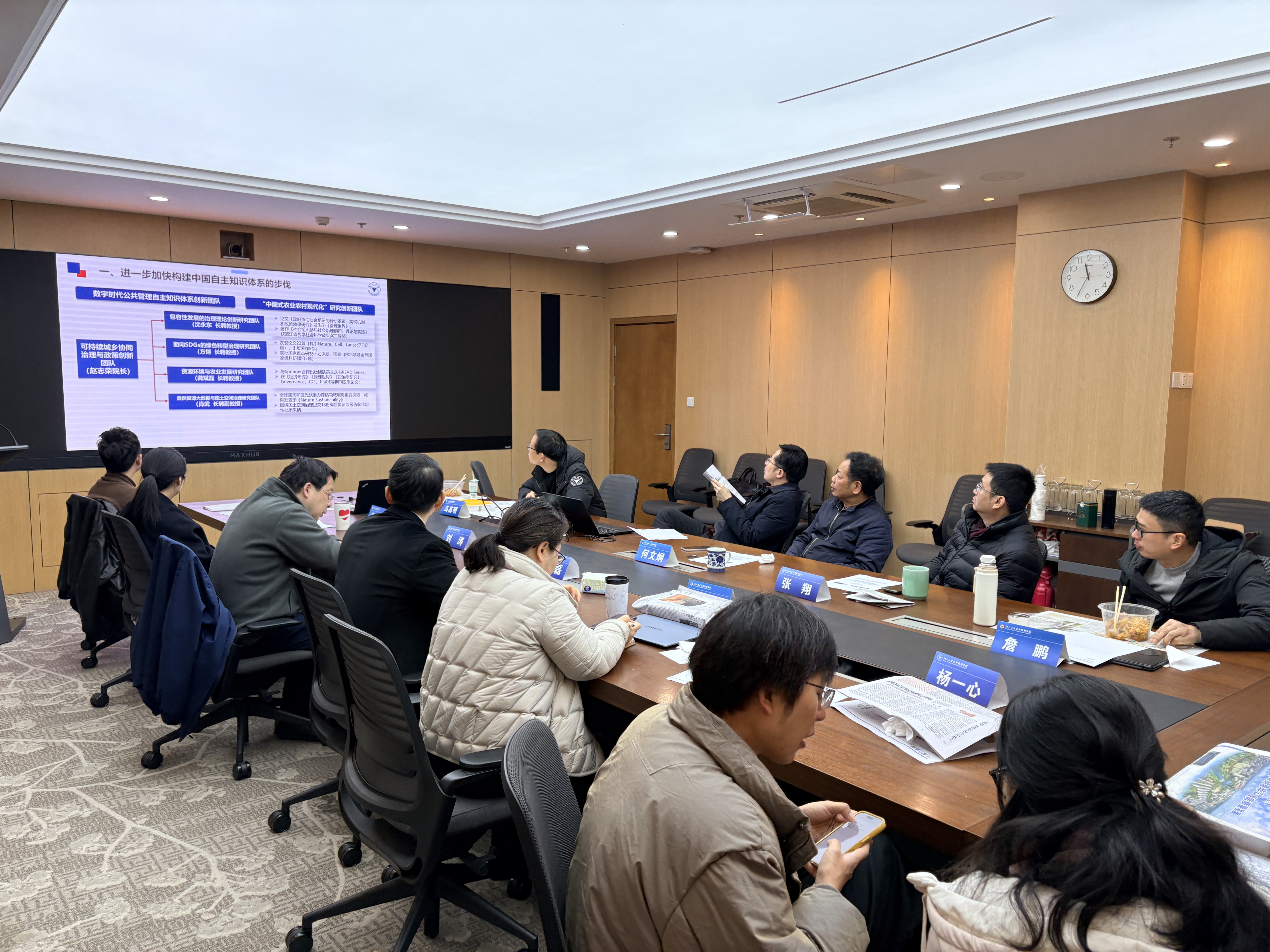为深入学习贯彻习近平新时代中国特色社会主义思想,巩固拓展党员教育培训成果,推动党建与业务深度融合,2026年1月19日中午,浙江大学公共管理学院社会保障与风险管理系教工党支部在紫金港校区公共管理学院楼901会议室,组织开展“党建业务深融合 科研育人双驱动”主题党日活动。活动由支部书记刘晓婷教授主持,公共管理学院副院长龚斌磊教授出席。