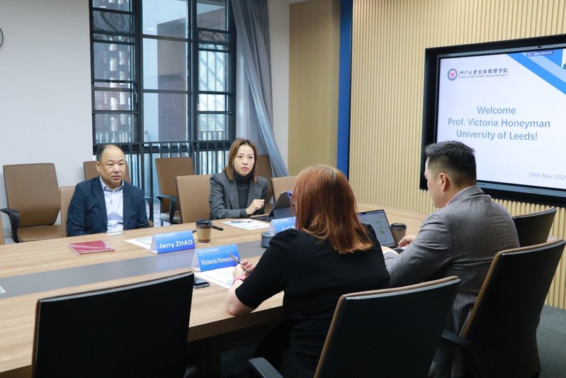 On the morning of November 18, 2025, Professor Victoria Honeyman, Pro-Dean of Student Education at the Faculty of Social Sciences, University of Leeds (UK), visited the School of Public Affairs (SPA), Zhejiang University. Professor Zhao Zhirong, Dean of SPA, Professor Shen Wei from the Department of Political Science, and Ms. Lu Lin, International Relations Secretary, attended the meeting. Both parties conducted in-depth exchanges on inter-university cooperation prospects and reached multiple consensuses.