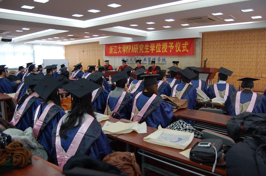 12月30日,浙江大学MPA学位授予仪式在玉泉校区外经贸楼隆重举行。浙江省公务员局董建春处长,浙江大学公共管理学院副院长郁建兴,浙江大学MPA教育中心主任徐林、副主任王诗宗,浙江大学公共管理学院教授代表许庆明等领导和嘉宾出席了典礼,为60名MPA研究生授予硕士学位。