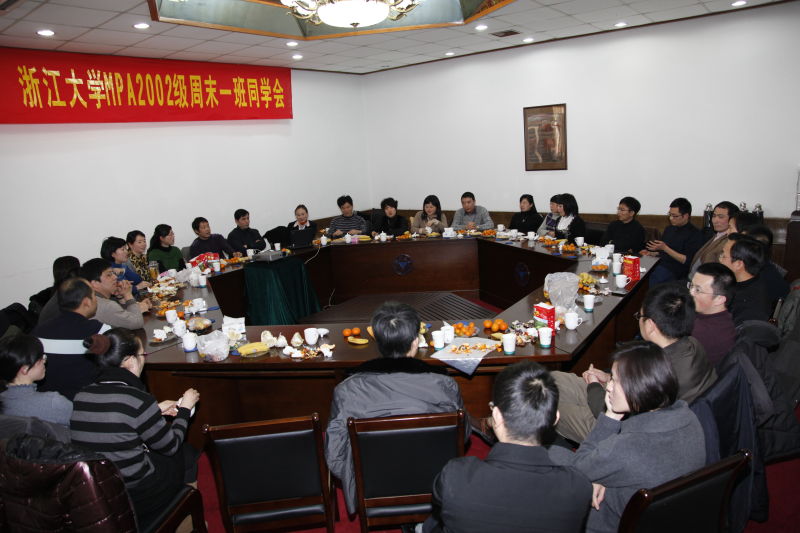 2010年12月18日上午,浙江大学邵逸夫会议中心二楼1号会议室内充满欢声笑语,2002级公共管理硕士(MPA)专业周末一班的30多名毕业生回到母校,叙旧话新。大家畅想当年在校时,与其他班级举行辩论赛、足球赛,开辟英语角、学演英语剧,组织集体郊游……丰富多采的学习生活恍若眼前,风景秀美的玉泉校园里留下数不尽的回忆,一向充满激情与活力的同学们有时激动,有点恍惚,我们回来了……