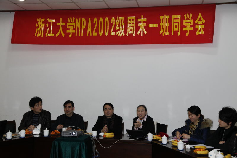 2010年12月18日上午,浙江大学邵逸夫会议中心二楼1号会议室内充满欢声笑语,2002级公共管理硕士(MPA)专业周末一班的30多名毕业生回到母校,叙旧话新。大家畅想当年在校时,与其他班级举行辩论赛、足球赛,开辟英语角、学演英语剧,组织集体郊游……丰富多采的学习生活恍若眼前,风景秀美的玉泉校园里留下数不尽的回忆,一向充满激情与活力的同学们有时激动,有点恍惚,我们回来了……