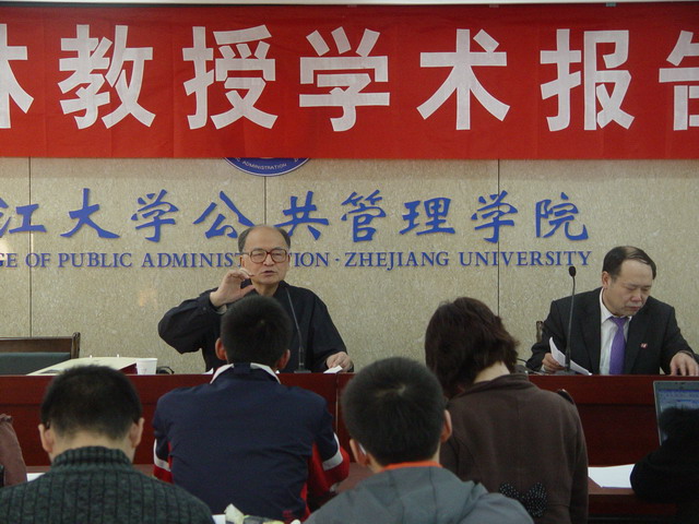 一点钟刚过,教室里就坐满的了人,有从紫金港校区赶来的本科生,还有玉泉校区的研究生,以及公共管理学院的老师教授和领导。寒冷的空气了充满了大家求知若渴的真挚,和一睹专家风采的热情。