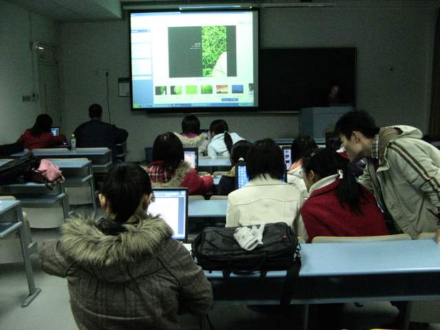 王建主任对同学们刚才的学习效果进行了充分的肯定,并再一次强调了学习这两个软件的重要性。他首先让同学们准备好几幅图片和一篇Word文档,并让大家跟着他一步一步进行操作。他用浅显生动的语言和简单快捷的操作步骤让大家较快地熟悉了该软件的常用功能,并举了许多实例进行解说,对软件界面上的各种工具进行了详细的介绍。然后他让同学们载入刚才准备好的图片和文字,进行排版的实际操作练习。他在讲授过程中不时询问同学们的进度,并适时调整讲授的节奏,及时解答同学们的疑问。