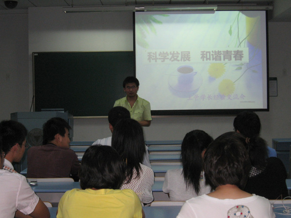 接着,土管04级班长盛宣玮对各位学长作了简短的介绍,其中有进入企业的成功者,有曾积极准备考研的佼佼者,也有对出国情况的甚悉者。经过简介,大家对各学长有了初步的认识与了解。