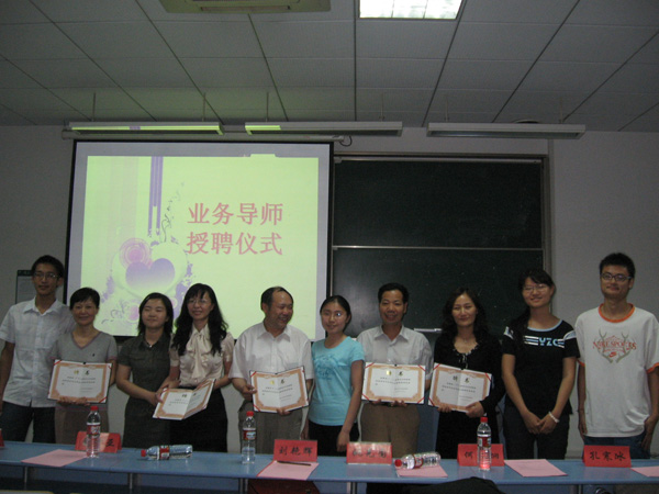 接着胡老师介绍了在场的各位嘉宾,并对他们在百忙之中能抽空到来表示衷心的感谢。校团委副书记刘艳辉老师首先发言,她祝贺各位学员成功通过选拔进入了青马学院,对公共管理学院的青马学院寄予了高度厚望,并希望学员能谦虚认真,努力成为社会主义事业的可靠接班人。院长姚教授随后发言,在现场气氛的引导下,姚院长兴致勃勃地回顾了他从学生成长为一个马克思主义者的光辉历程,他高度赞扬了马克思对人类的贡献,强烈推荐大家多去看看马克思的著作,并要求同学们在如此好的环境中,多和老师、同学切磋,研究马克思主义。然后展出了由叶岚同学设计的青马学院的logo,大写的字母Q和小写的cpa代表着公共管理学院青年马克思主义者培养学院,字母里的人和底下红蓝的颜色充分展示了青马学院理论结合实践的培养理念。启动仪式进行到这里,下面是隆重的青马学院业务导师受聘仪式,青马学院各小组的组长分别向姚先国院长、何文炯教授、钱雪亚教授、孔寒冰副教授和陈丽君副教授颁发了受聘证书,正式聘请他们为青马学院的业务导师,指导五个小组的学员成长。接着是各位导师的寄语,首先是何教授的精彩开场白“我是一个老青年”,接着分别是钱教授的“先学会做事”,孔教授的“学会宽容和感恩”和陈教授的“健康快乐、持续成长”。导师们真诚的祝福赢得了在场的阵阵感激的掌声。