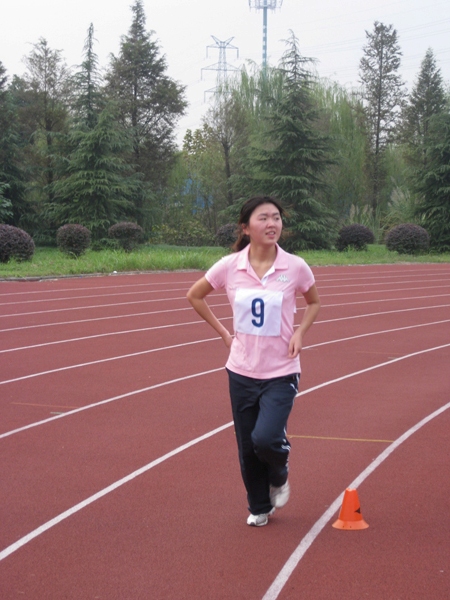 记:是的,名次不是目标。你在上次校运会有参赛吗?