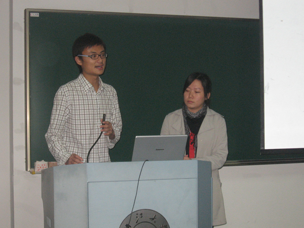 接着,进入了活动的第二个环节,即“现场模拟”,要求到场同学临时分成四个小组并就当场给出的两个活动主题完成一份策划。柴雪和罗淑雯分别就以“模拟公务员面试”和“学习实践科学发展观”为主题的活动要求进行了说明,各小组都进行了热烈讨论。首先上去进行结果展示的是完成有关“模拟公务员面试”活动策划的两个小组,他们均从活动的背景等多方面阐述了自己小组的策划。在其他两个小组就场地和报名等问题向“模拟公务员面试”两个小组进行提问之后,柴雪