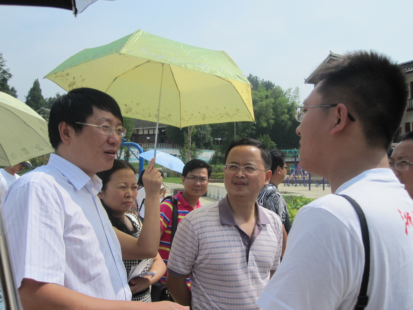 在参观过程中,实践团队有幸遇到了前来田家沟考察的仁怀市广电局的领导们。队长韩永亮和仁怀市文体广电旅游局局长王道勋进行了深入的交流。韩永亮向王局长介绍了浙江大学“红色寻访”主题活动和此次公共管理学院暑期社会实践的实践路线和内容,王局长表示了对大学生社会实践活动的肯定和鼓励,此外,王局长还向队员们介绍了仁怀市为庆祝建党九十周年举办的系列活动,并热情邀请实践团队到仁怀市参观寻访。