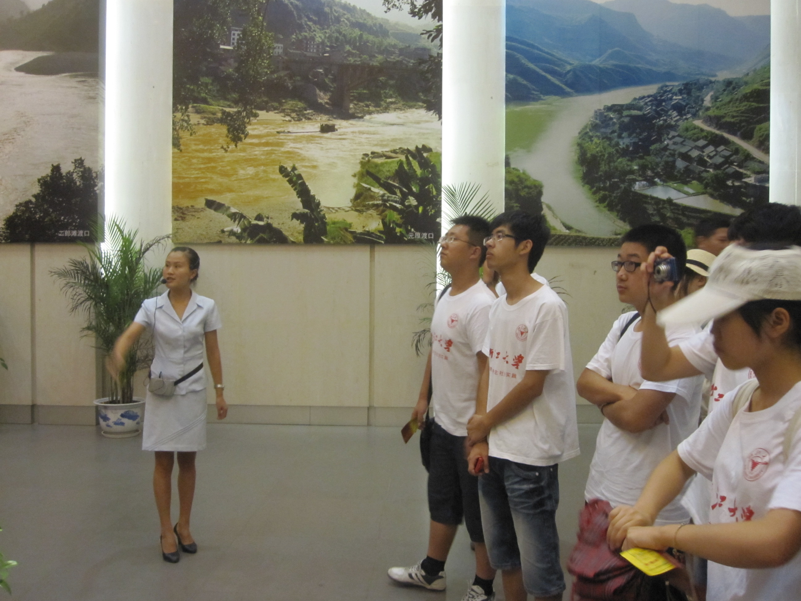 月24日上午9点30分,团队从习水市城区出发,乘汽车沿赤水河畔的盘山公路来到土城县,并在当地领导的安排下参观了红军四渡赤水纪念馆。纪念馆位于土城镇长征街,队员们了解到,纪念馆原名“花园”,长征时红三军团司令部曾在在此驻扎。纪念馆为中西合璧两层砖房,由原中央军委副主席张震将军题写馆名。场馆内部采用图片、文字、实物相结合的方式进行布展,在讲解员的讲解下,团队队员全面客观地认识了红军四次渡过赤水河的战斗经历,详细了解了“土城战役”在“四渡赤水”战役中的作用。在一间展厅内,陈列着红军长征途中内部发行的报纸《红星报》,据了解,土城县红军四渡赤水纪念馆是中国唯一一家保存全部28期《红星报》的革命纪念馆,报纸全部为手写体印刷,上面记载着红军长征途中的重大政策和宣传文章,通过一张张记录着红色历史的报纸,一行行苍劲的手写印刷体,队员们无不为当年红军坚定的共产主义信仰所震撼。在每个展区内,一组组生动的再现当年红军长征历程的人物雕塑令队员们震撼不已,同时,馆内陈列的当年红军行军时用过的枪支、草鞋、行军锅等军用物品,队员们身临其境地感受到了当年红军长征的艰苦。